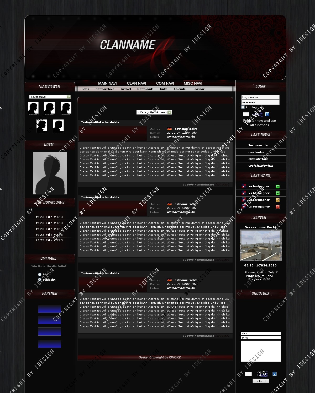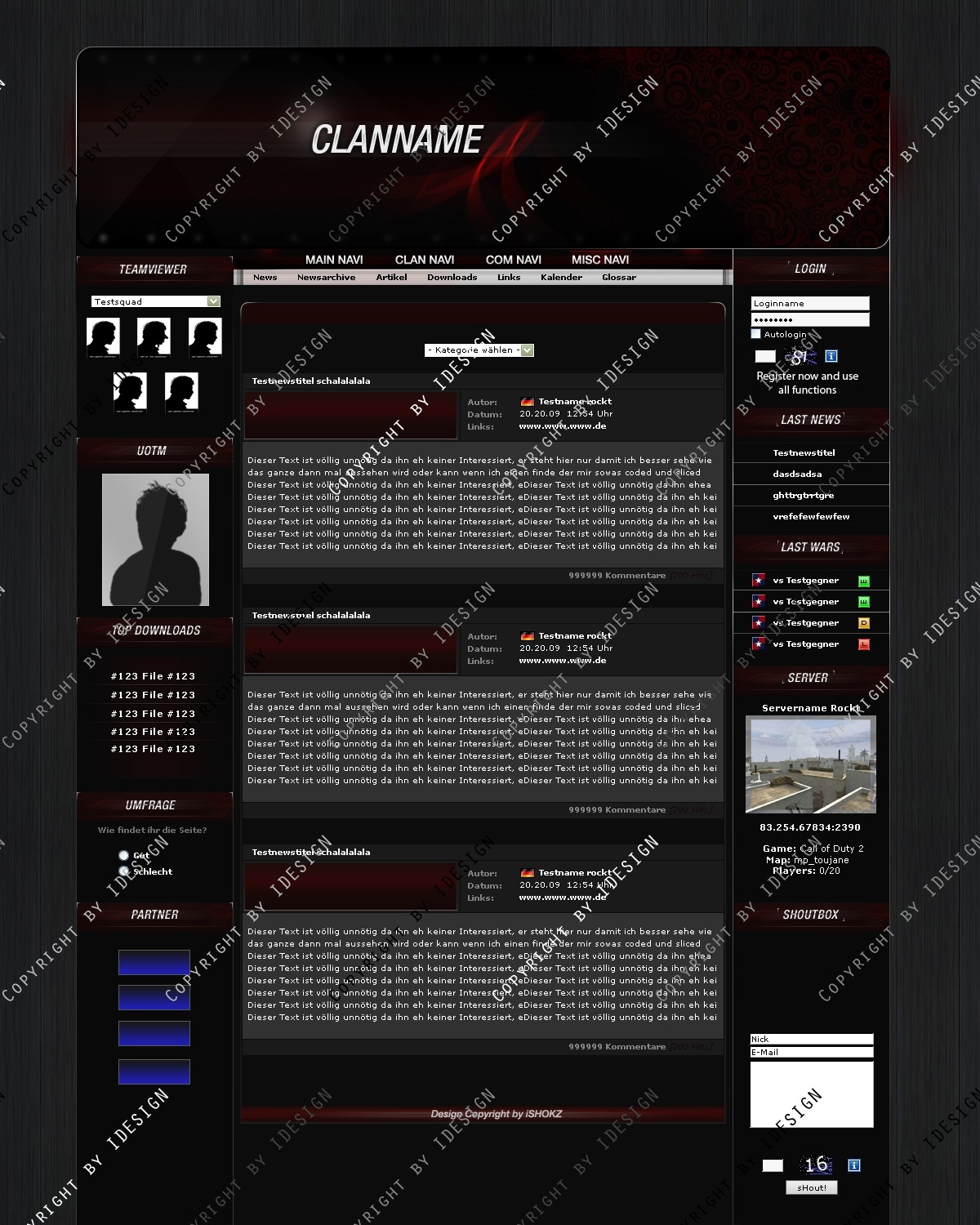 Du hast noch keinen Account auf ClanDesigns.de? Dann kannst du dich hier kostenlos registrieren!
