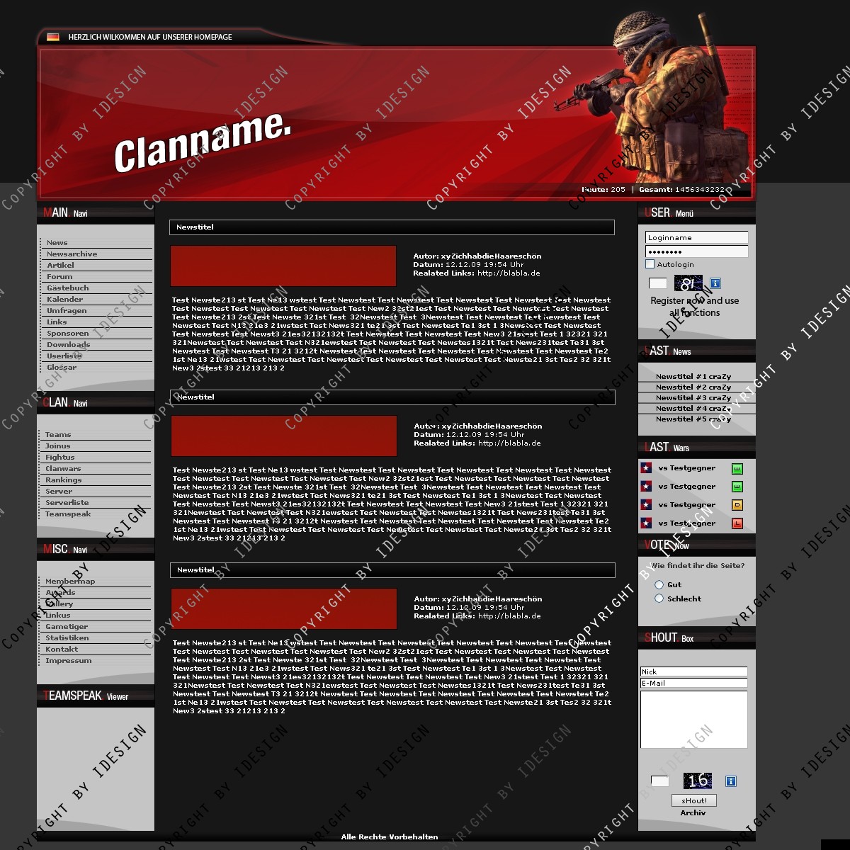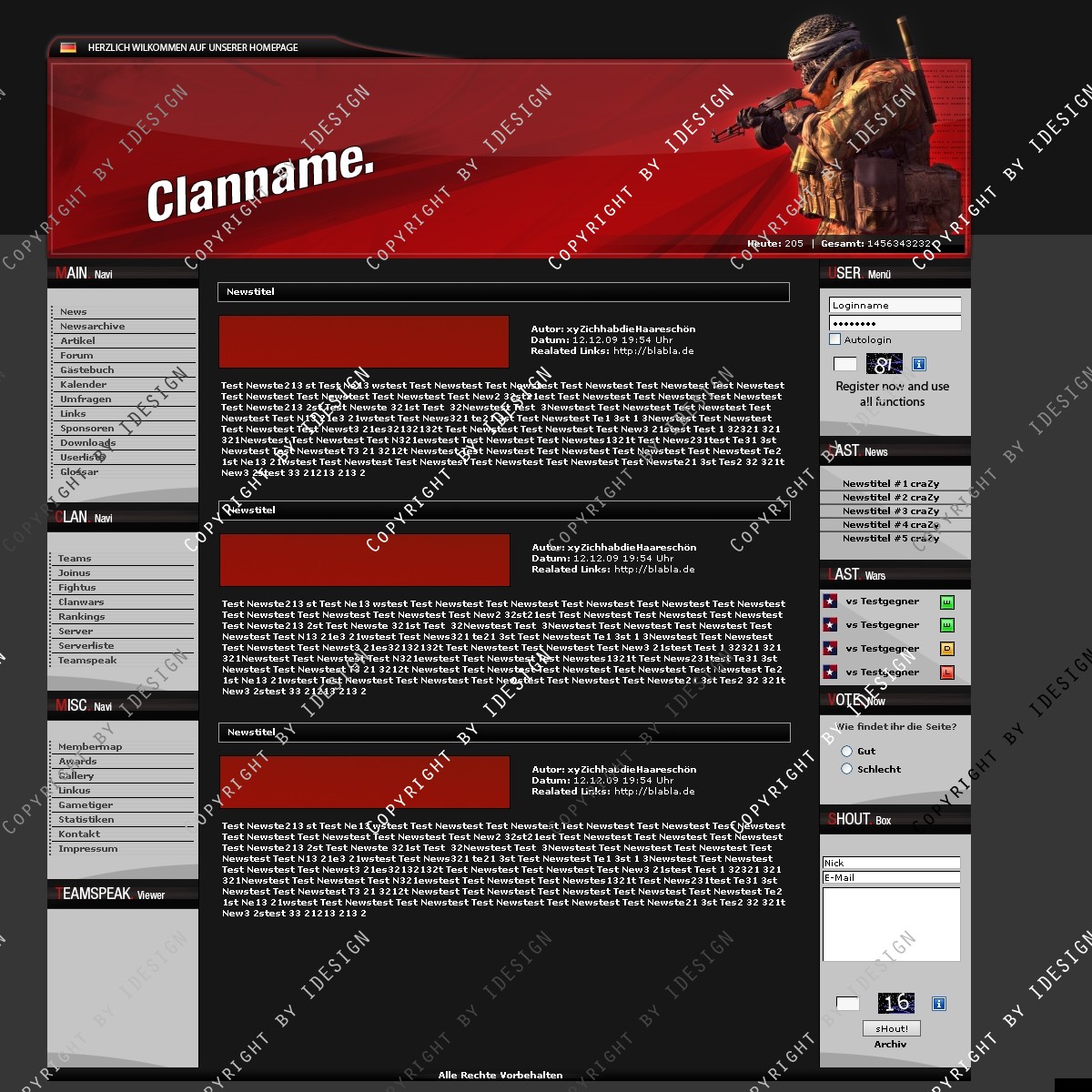 In der psd sind Call of Duty 4, Crysis, Battlefield und Call of Duty 1 Figuren für den Header.