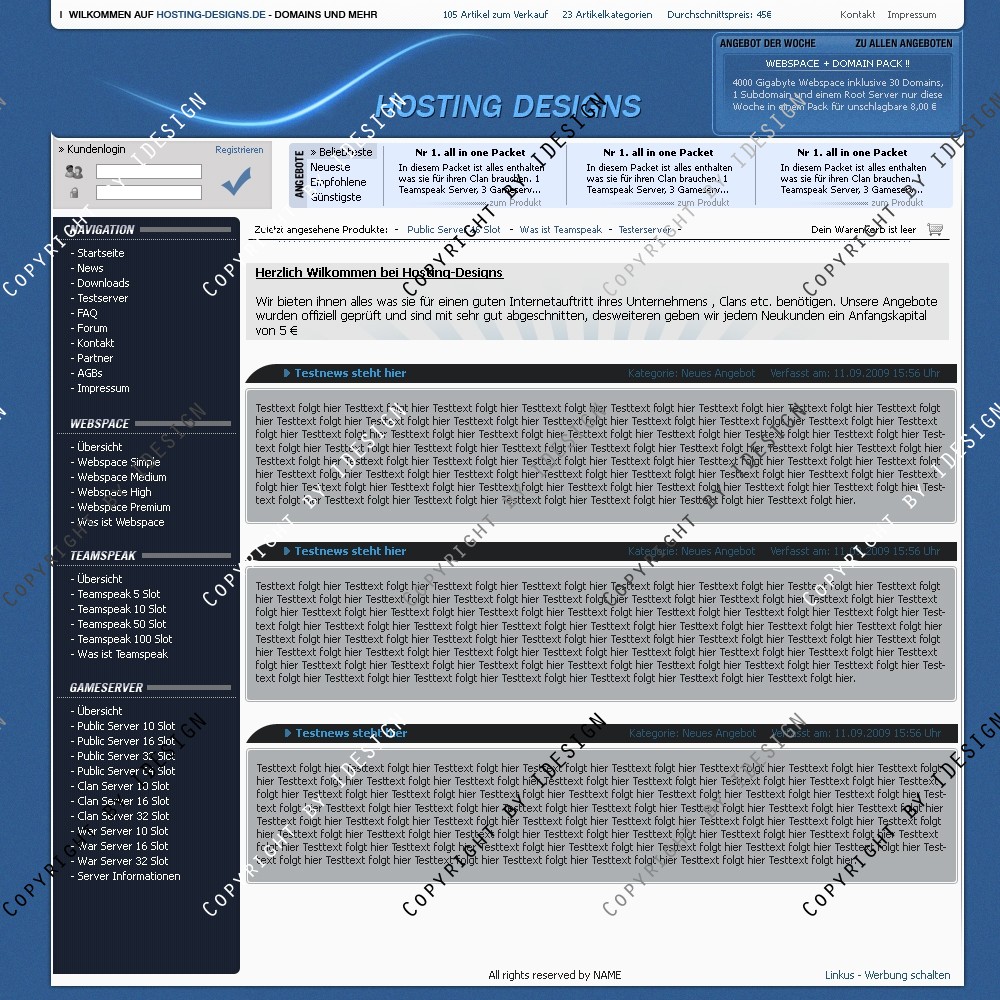 Sehr übersichtlich aufgebautes Hosting Design. Sehr viele Funktionen mit eingebaut für ihren perfekten Internetauftritt
