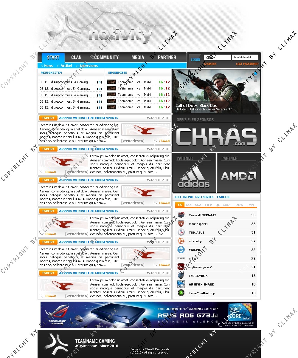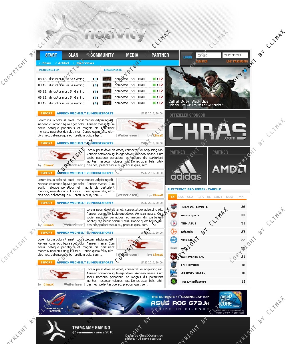 Stelle hier eine kleine Team- / Clanpage zur Verfügung. Enthalten ist nur die .PSD Datei.