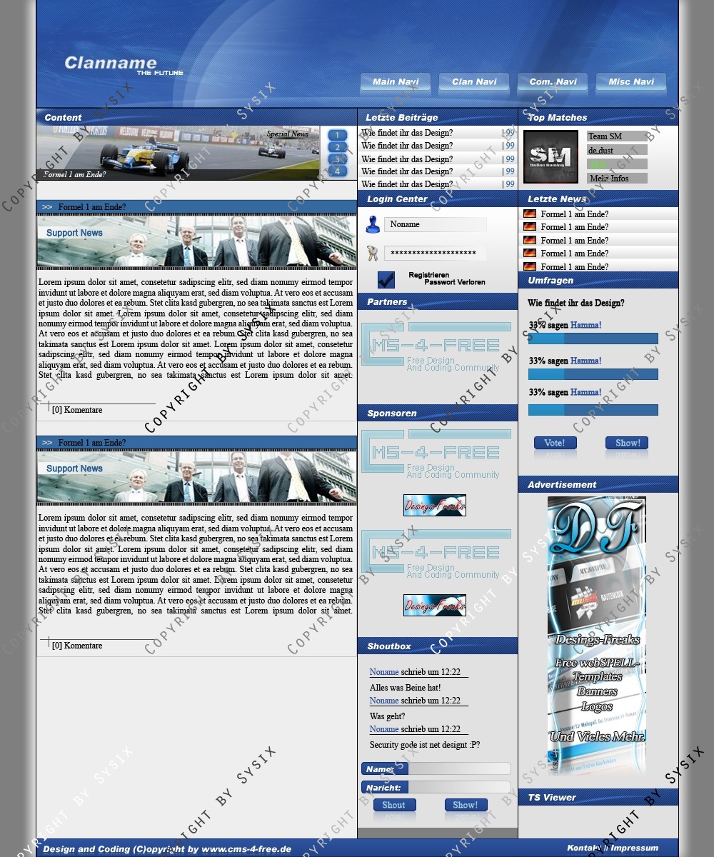 Du hast noch keinen Account auf ClanDesigns.de? Dann kannst du dich hier kostenlos registrieren!