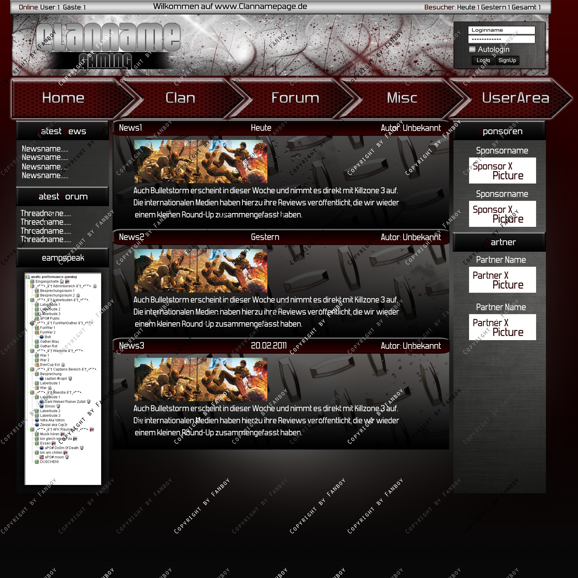Du hast noch keinen Account auf ClanDesigns.de? Dann kannst du dich hier kostenlos registrieren!