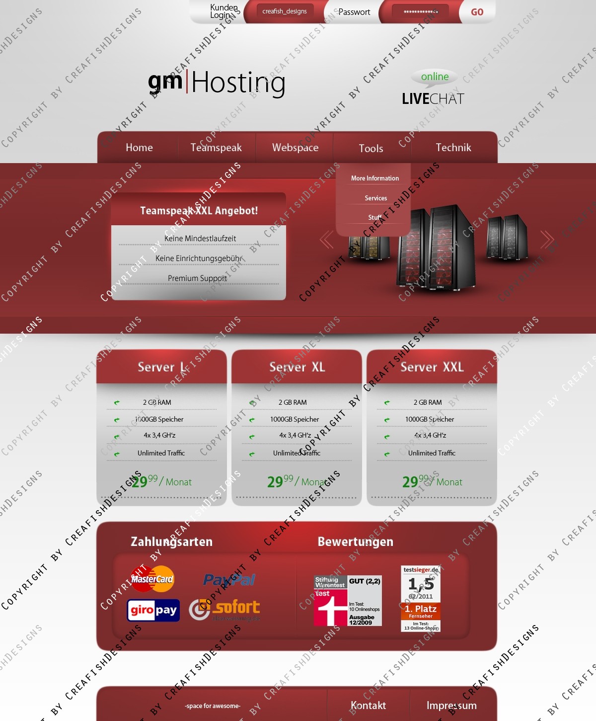 Hinweis: Hierbei handelt es sich nur um das Design, eine Anpassung an ein CMS-System ist nicht im Preis enthalten!