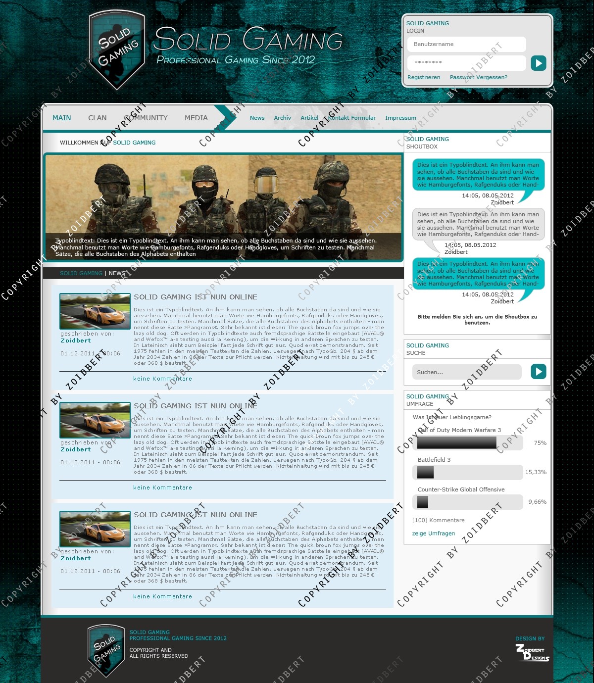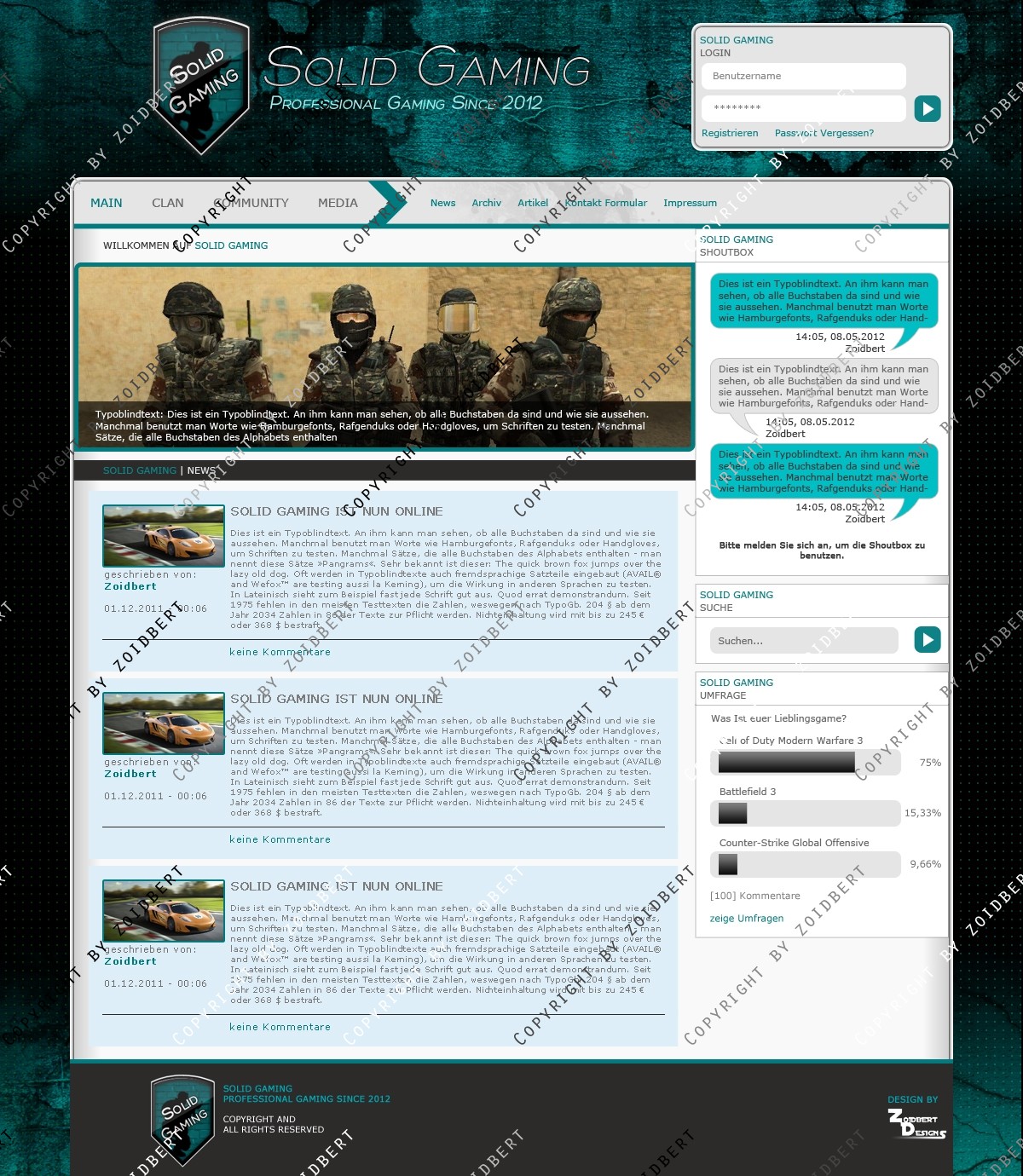ZoidbertDesigns präsentriert: Solid Gaming Template Hinweis: Design Only (Keine Anpassung und keine Slices)