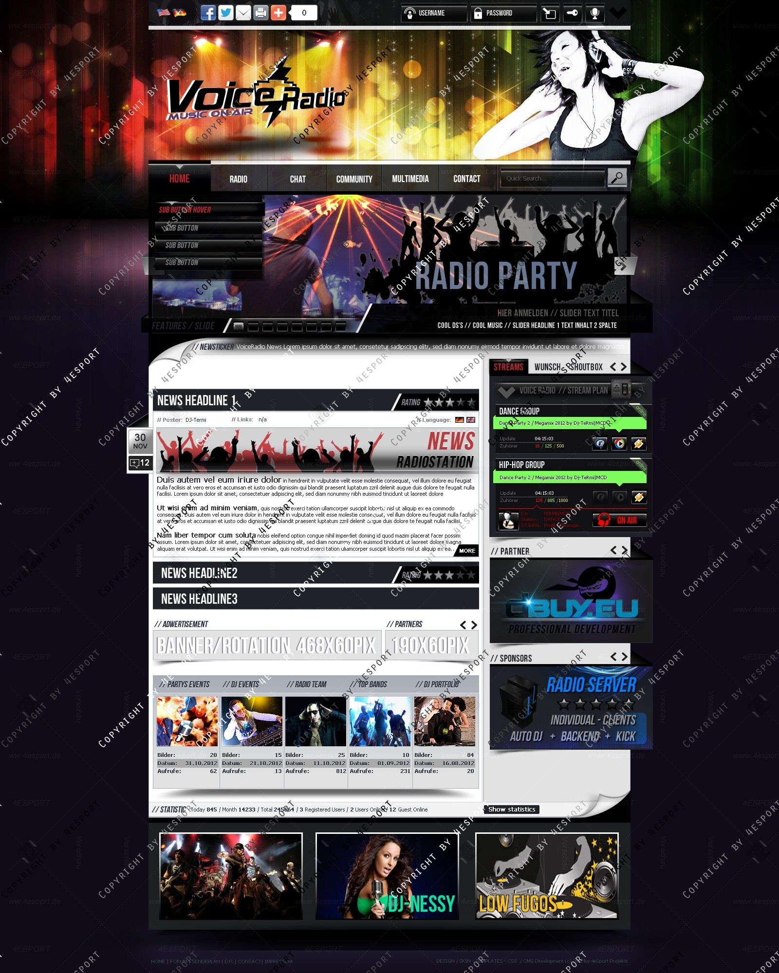 - Grafik Vorlagen je eine, in (PSD) für News Banner / DJ Teams (1x kein –1x großer Banner) 5x-Link-AS Banner.