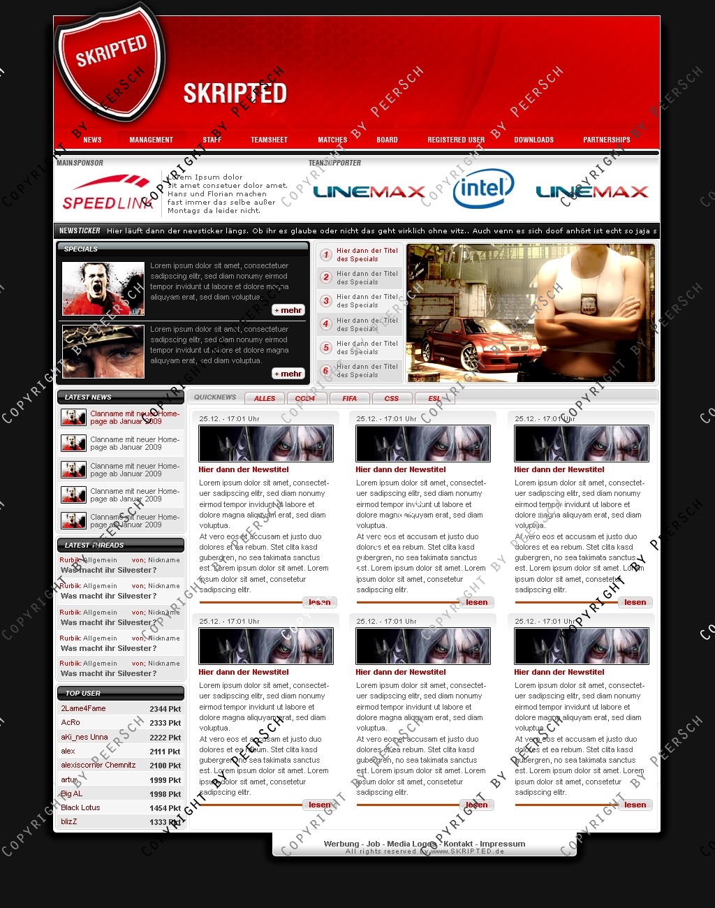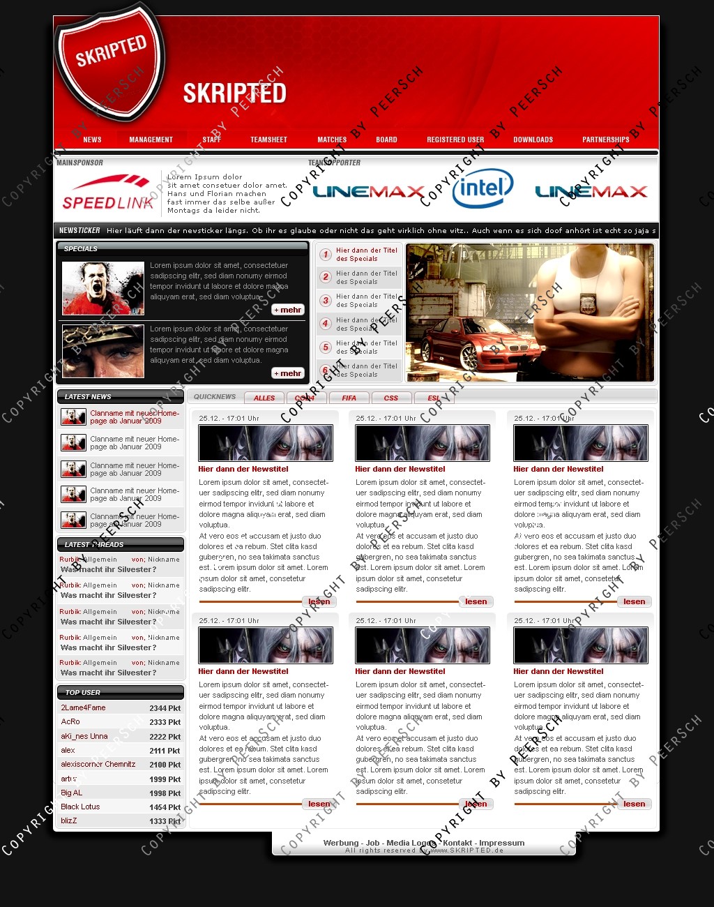 Was Sie hier kaufen ist lediglich die PSD Datei, gerne kann ich es Ihnen gegen einen Aufpreis von 13€ an ein CMS Anpassen, zur Auswahl stehen hierbei: webSPELL, Clansphere, Teklab, Devilz und andere CMS auf Anfrage ohne Aufpreis.
