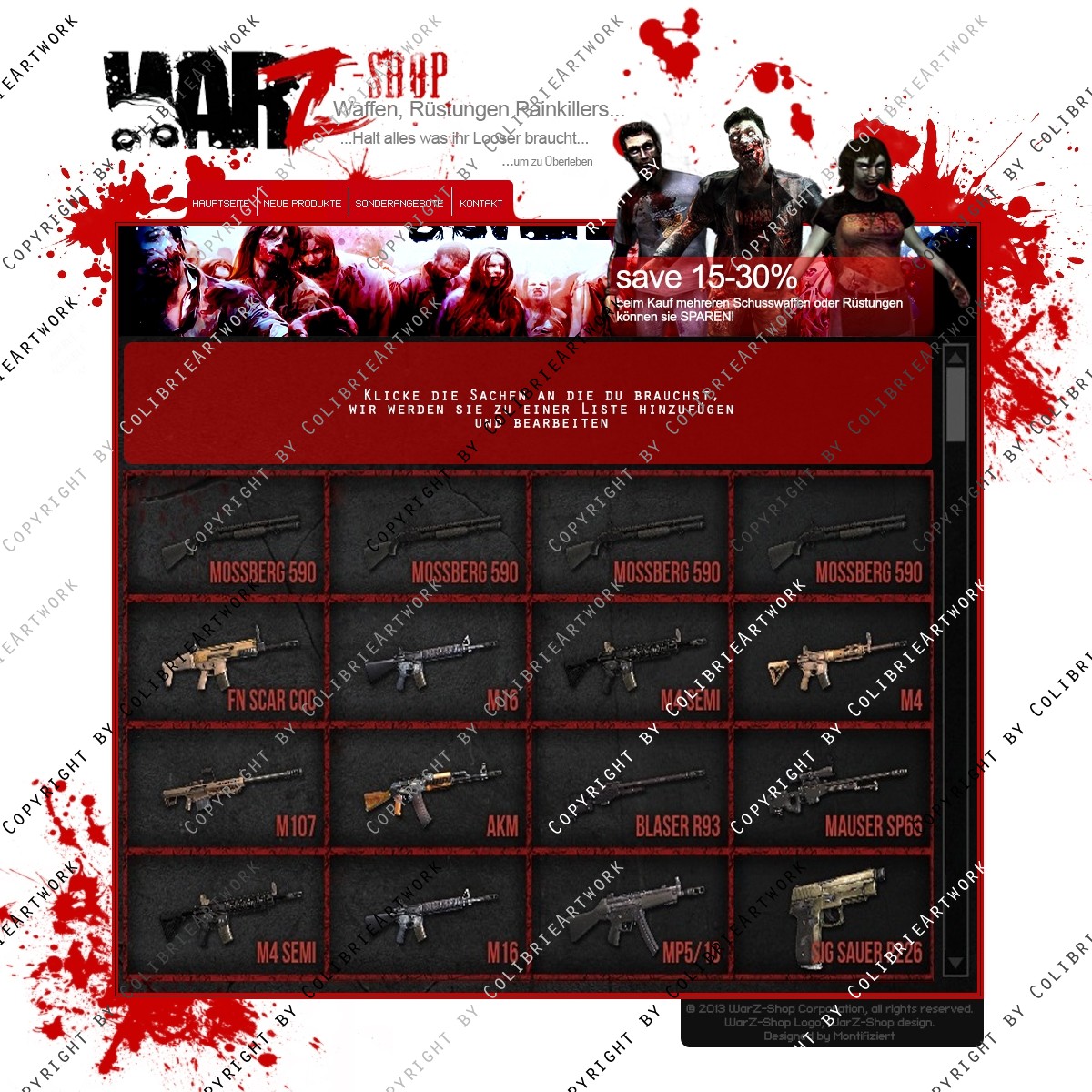 Es handelt sich hierbei um ein WarZshop Website die man aber auch gerne als Community Website für ggf. Survival oder Zombiegames verwenden kann. Für einen kleinen Preisaufschlag kann ich euch das komplette Design noch euren Wünschen anpassen.