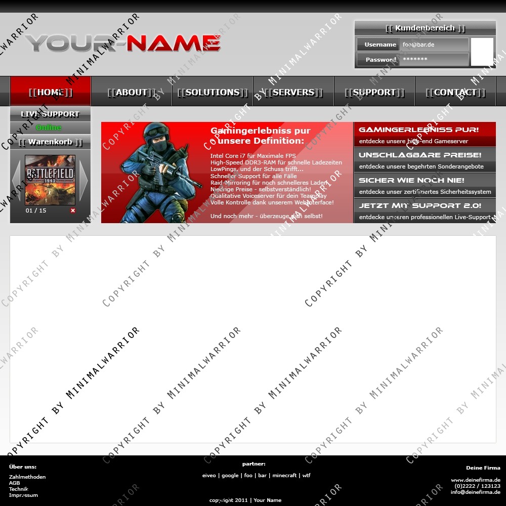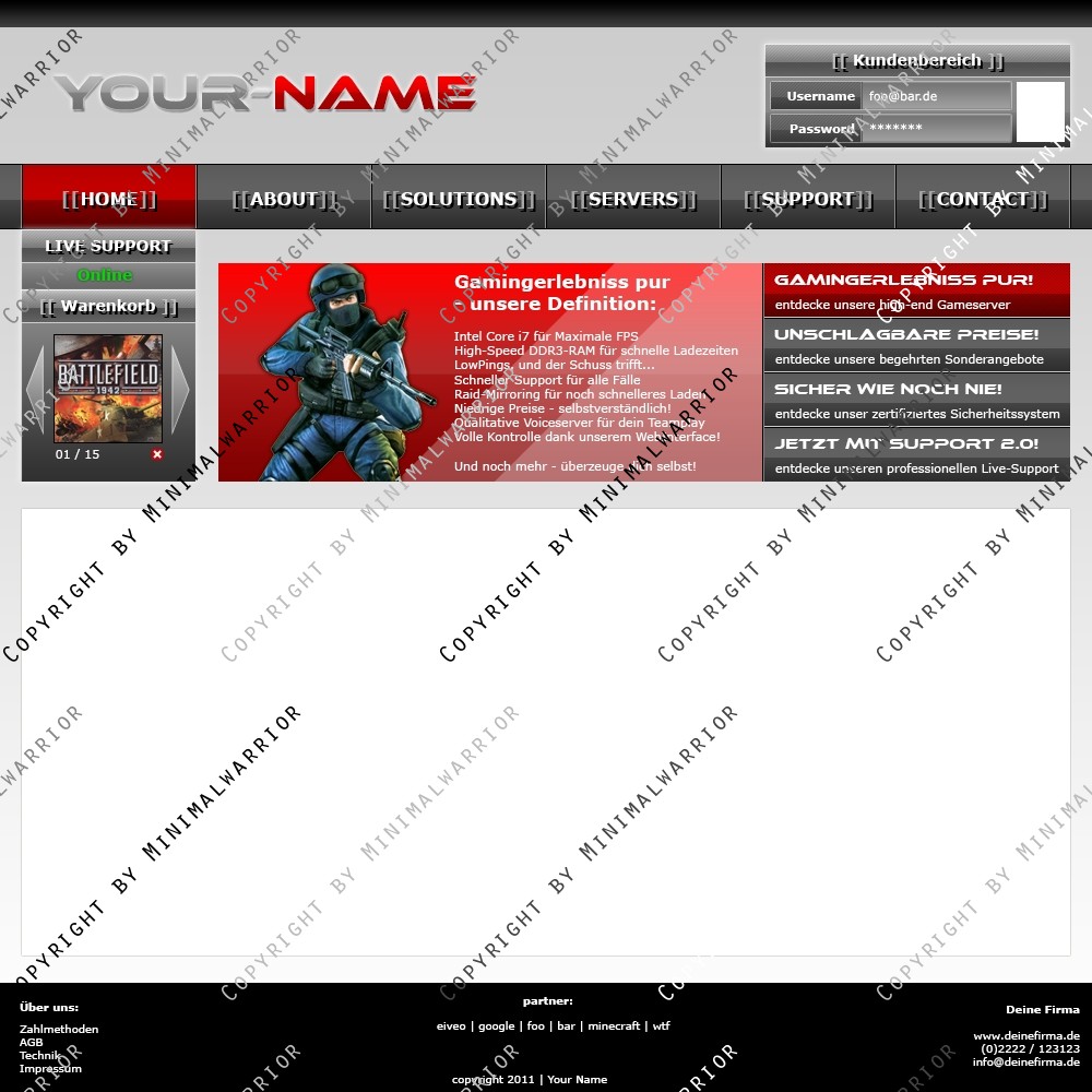 Sei der Erste und kaufe dir das Template Exklusiv um sicher zu gehen, das einzig und allein dein Hosting dieses Top-Design benutzt. Denn anhand des Designs kann man schon die Qualität des Hostings erkennen.