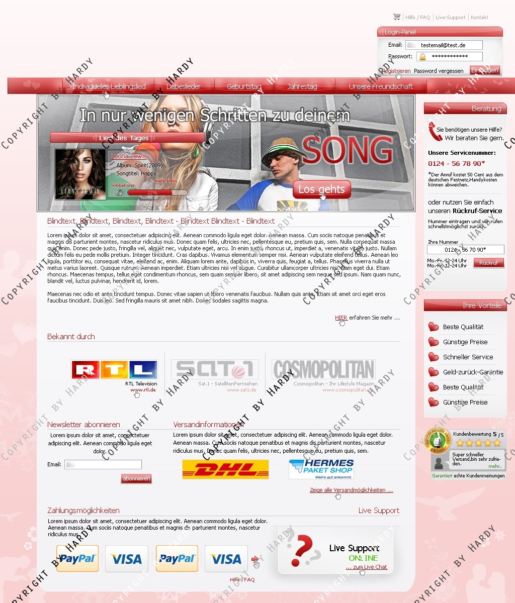 Hinweis: Hierbei handelt es sich nur um das Design, eine Anpassung an ein CMS-System ist nicht im Preis enthalten!