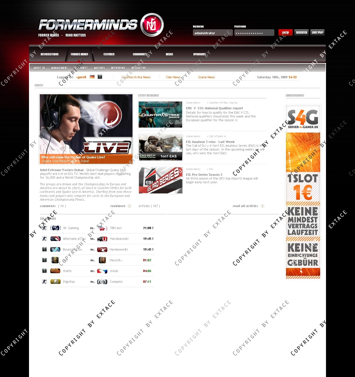 • Anpassung der Homeapage an ein CMS (webSPELL o.ä.) möglich (Zusatzkosten je nach Umfang - nur nach Absrpache)