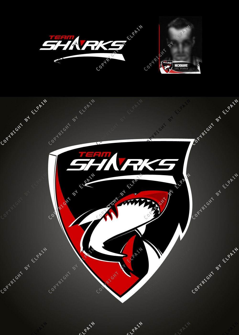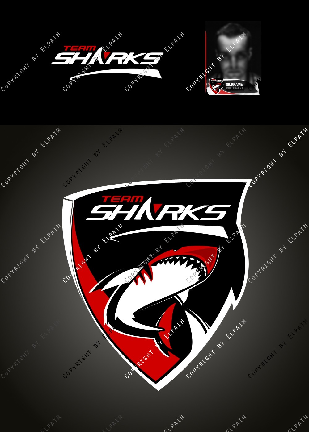 - Die .PSD Datei beinhaltet ALLE Ebenen als Formen, den original Team-Shark Schriftzug und eine kinderleichte Vorlage für den eigenen Clannamen. (Schriftarten liegen bei. S.o.)