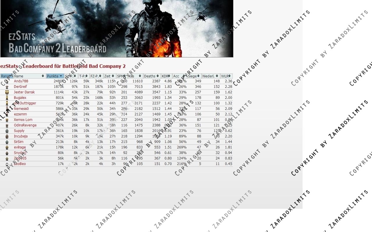 ezStats (BFBc 2) - Leaderboard für deine Clanhomepage powered by ezzemm