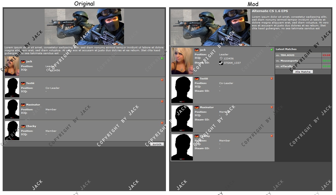 Diese Modifikation verändert die Standard Squadansicht in einigen Punkten.