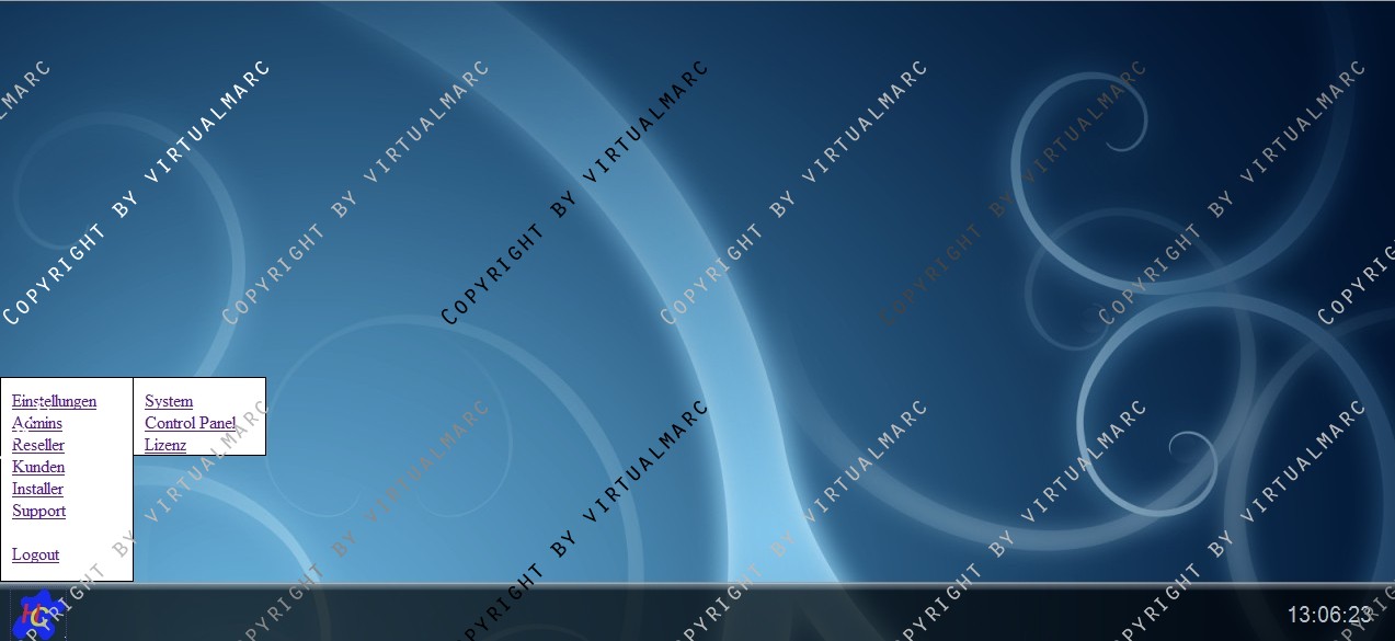 Unten befindet sich eine Menüleiste mit einer Uhr und einem PullUp Menü.
