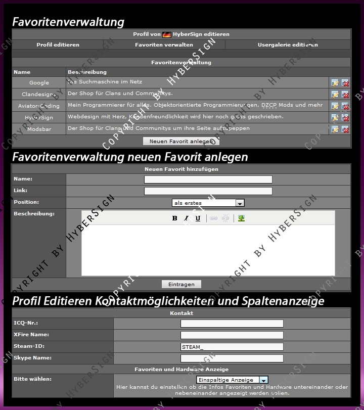 - Anzeige von User Web Favoriten die sich bequem beim Profil editieren anlegen lassen.