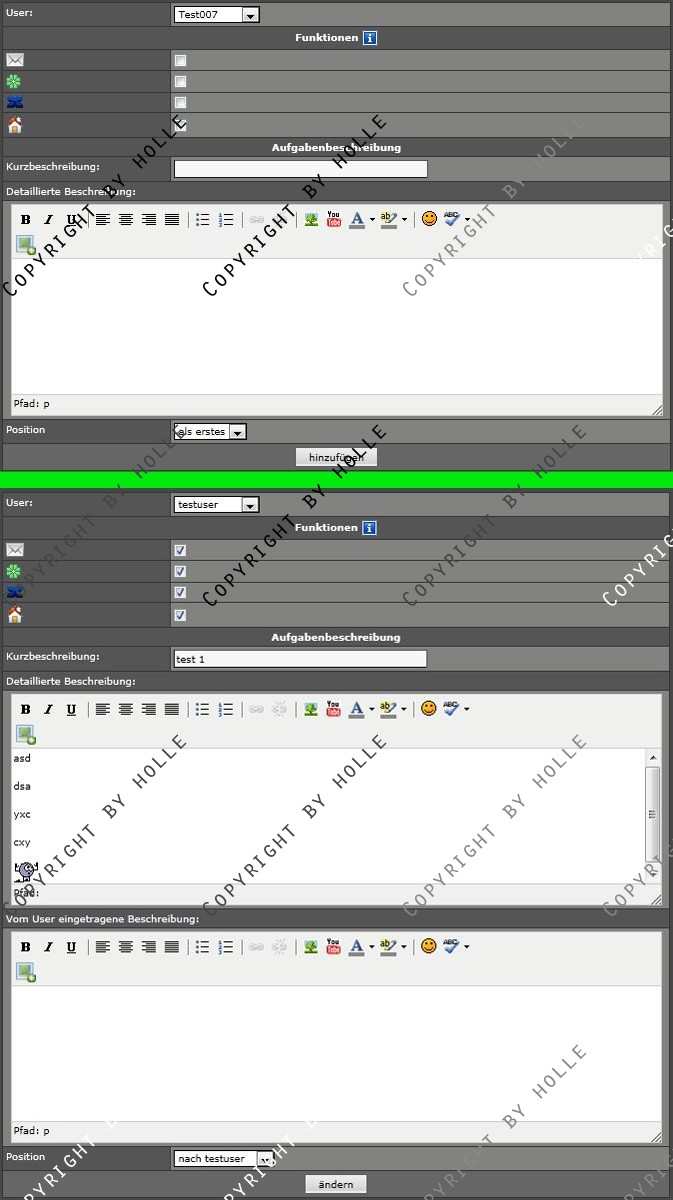 Bild 4: Oben: Formular zum eintragen einer neuen Aufgabe, Unten: Aufgabe editieren