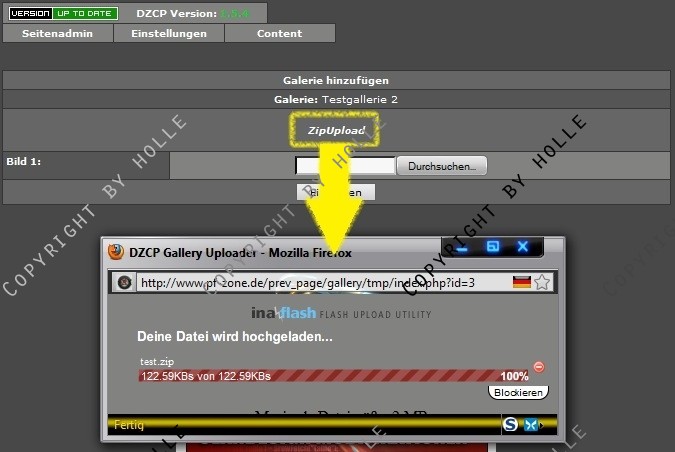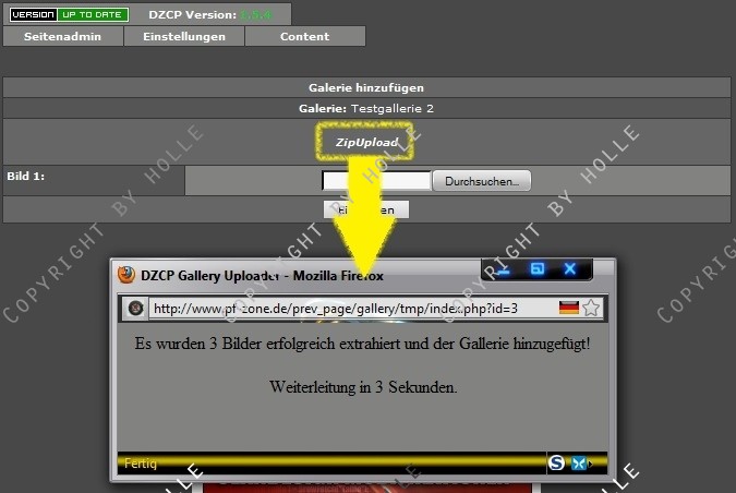 Darum habe ich diesen kleinen aber feinen Mod für das DZCP geschrieben, welcher euch erlaubt, eine zip-Datei mit Bilddateien auszuwählen & hochzuladen.