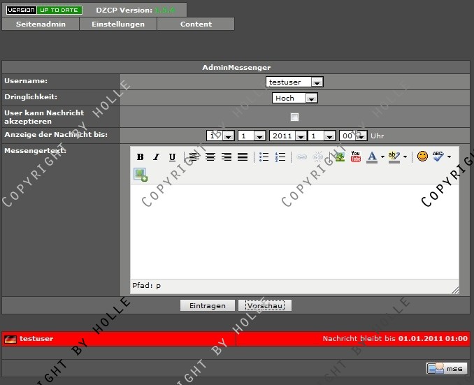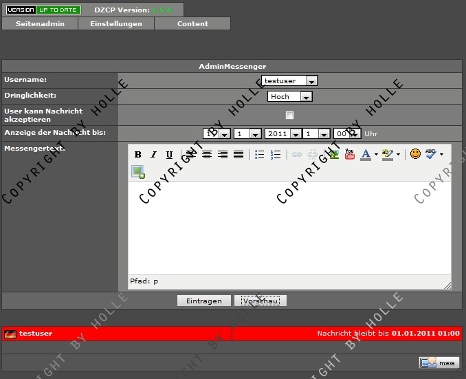 Nachdem mich einer meiner Mitadmins auf die Idee gebracht hat, ein Nachrichtensystem zu bauen, was einem Admin gestattet, einen User direkt anzuschreiben und eine Nachricht für längere Zeit bei ihm als Info anzeigen zu lassen, habe ich mich drangesetzt und ein neues Addon gecodet.