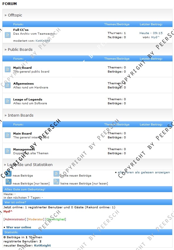 Eine vollkommen andere Forumansicht. Sie ist an das Forenlayout von wbb angelehnt, jedoch etwas völlig einzigartiges. Es gibt 2 Versionen, eine etwas hellere, und eine etwas dunklere.