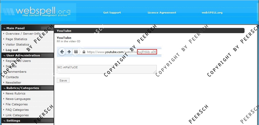 Das Video kann im gewohnten Admincenter von webSPELL geändert bzw. festgelegt werden. Eine kinderleichte Bedienung, auch sehr unerfahrene leute werden mithilfe der beigelegten Installationsanleitung mühelos dieses Addon einbinden können.