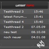 Mit diesem Addon ist es möglich die Uhrzeit der letzten Forenposts angezeigt zu bekommen. In der Infobox zu den letzten Forenposts steht jetzt nicht nur noch der Name der Threads, sondern auch das Datum des letzten Posts.
