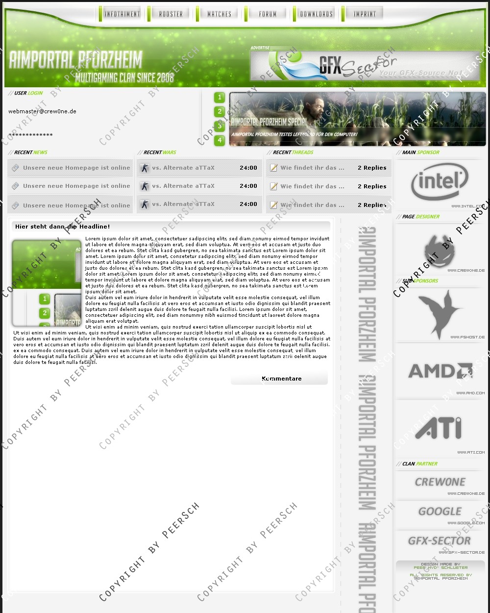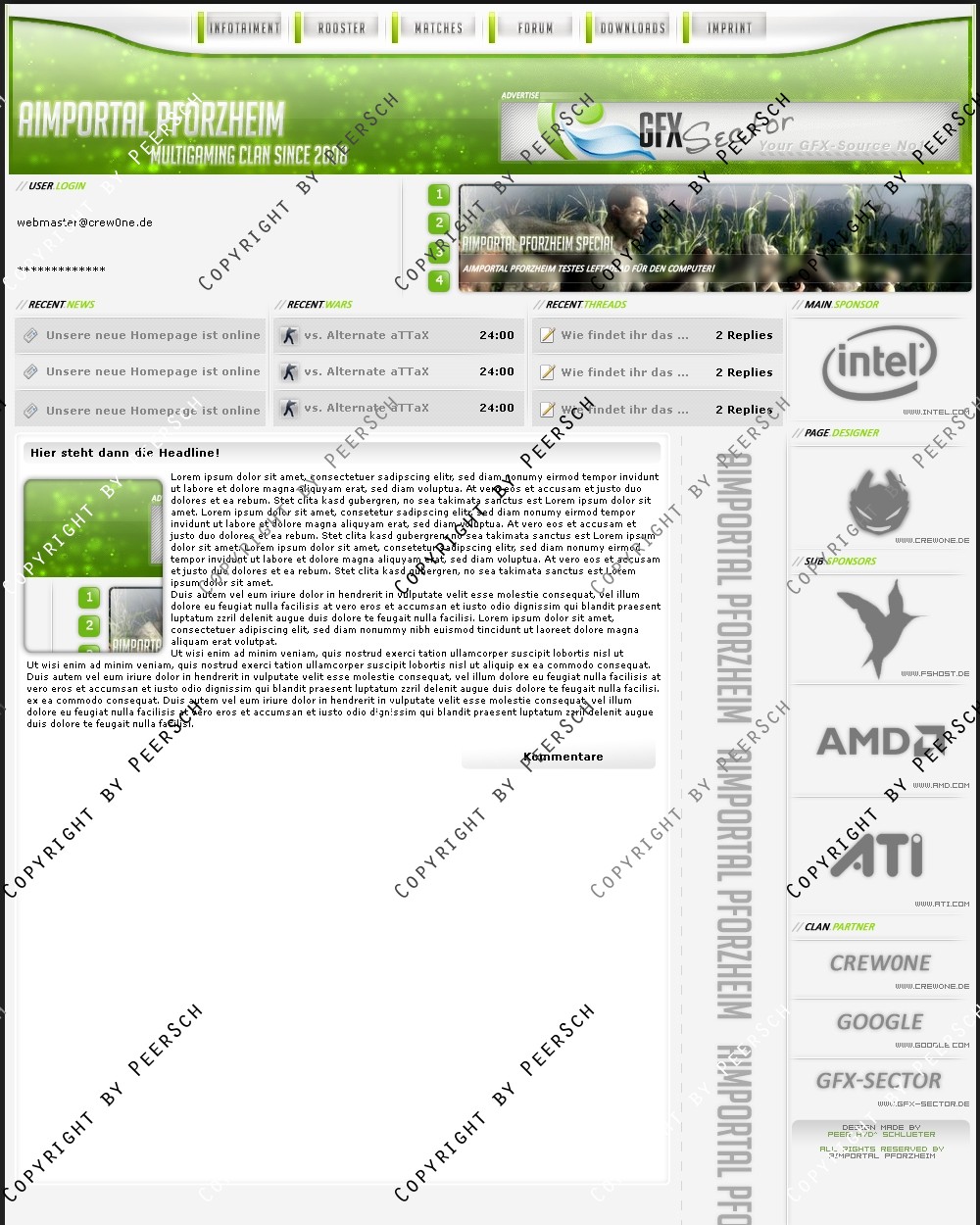 Dieses Template ist angepasst auf eine etwas ältere Version des webSPELL CMS. Bei Fragen oder ähnlichem melden Sie sich doch bitte per Email bei mir; [email protected].
