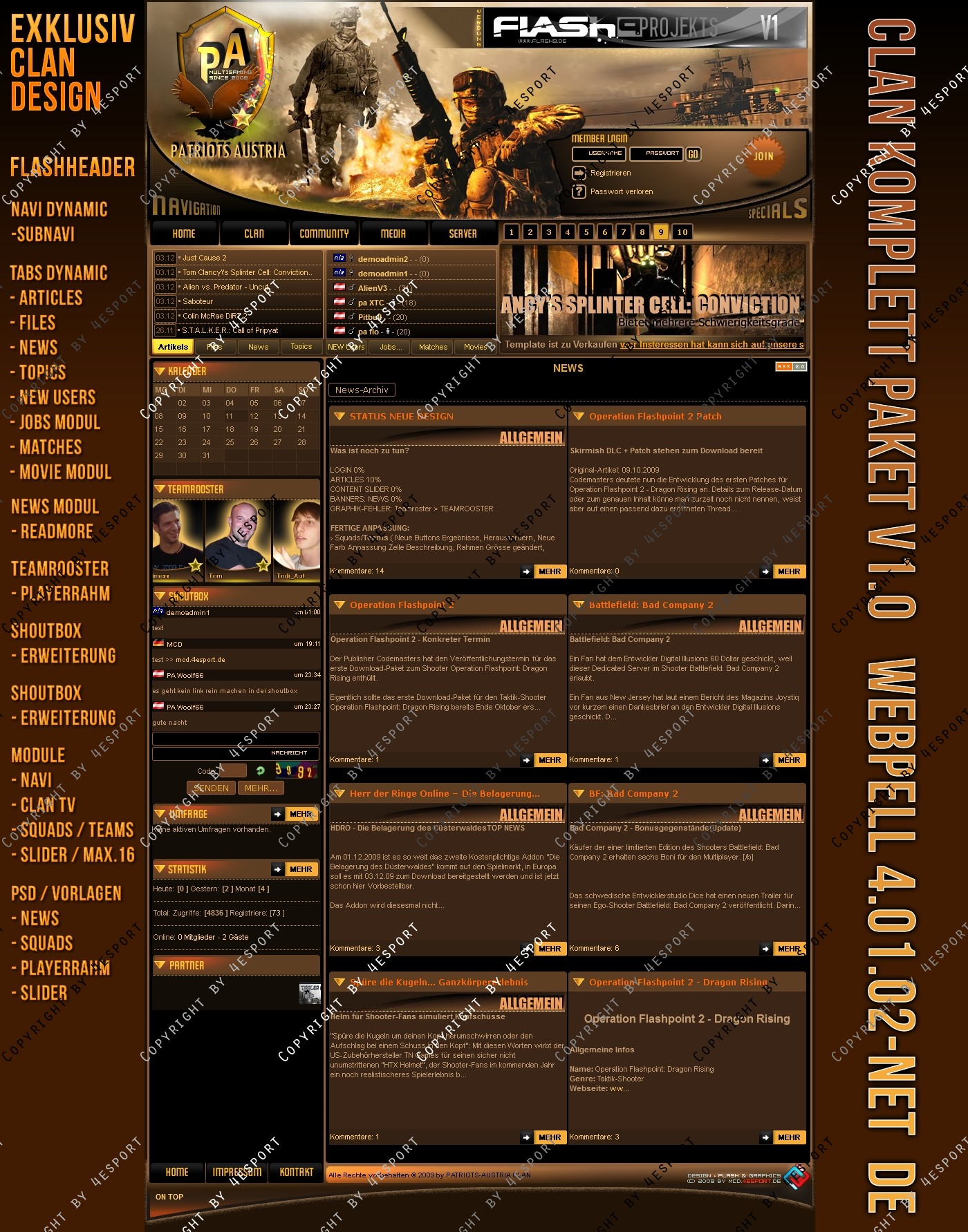Design PSD Inkl. : News-Vorlage, Squads-Teams-Vorlage, Slider-vorlage, PA-Logo, Header- Links (hinter Logo der graphik)