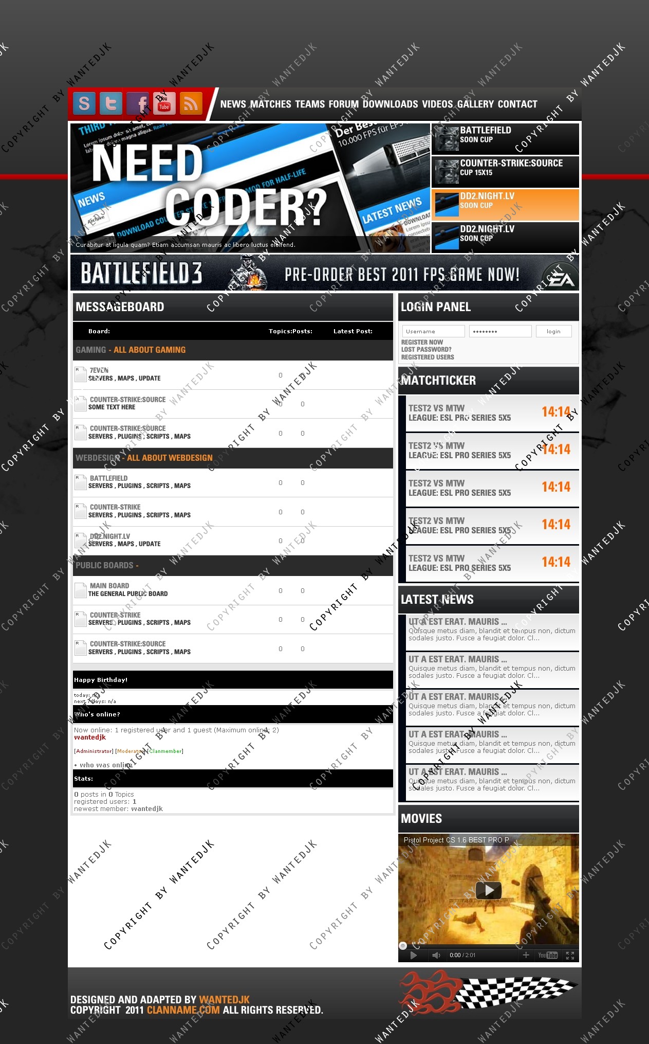 Include templates - News , Forum , Profile , Matches , Members
