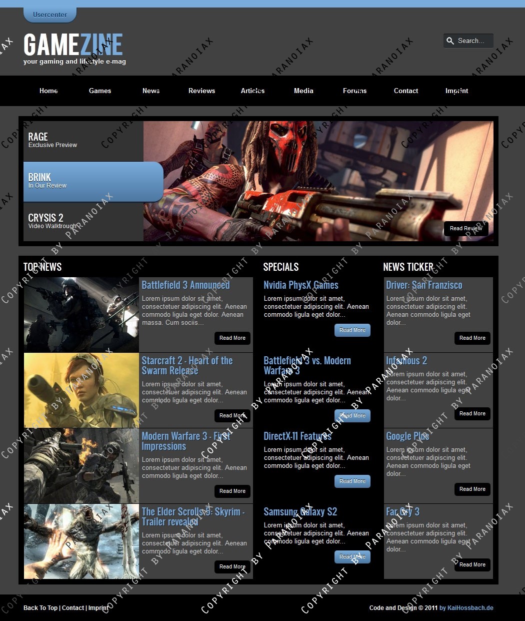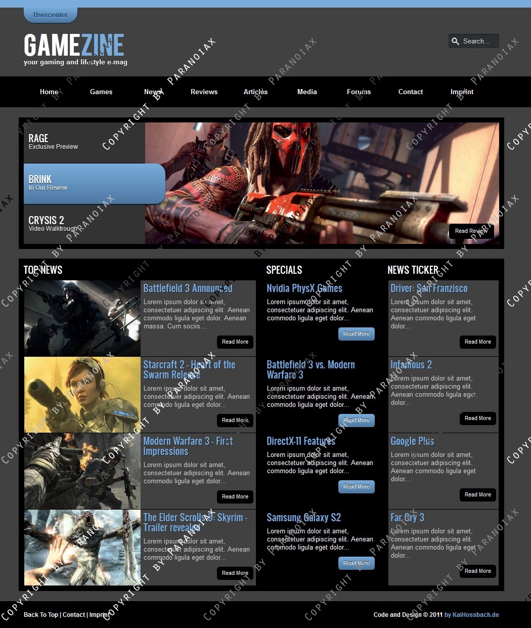 Auch als HTML Template erhältlich: http://www.clandesigns.de/templates/2748/gamezine-html5-css3-template/