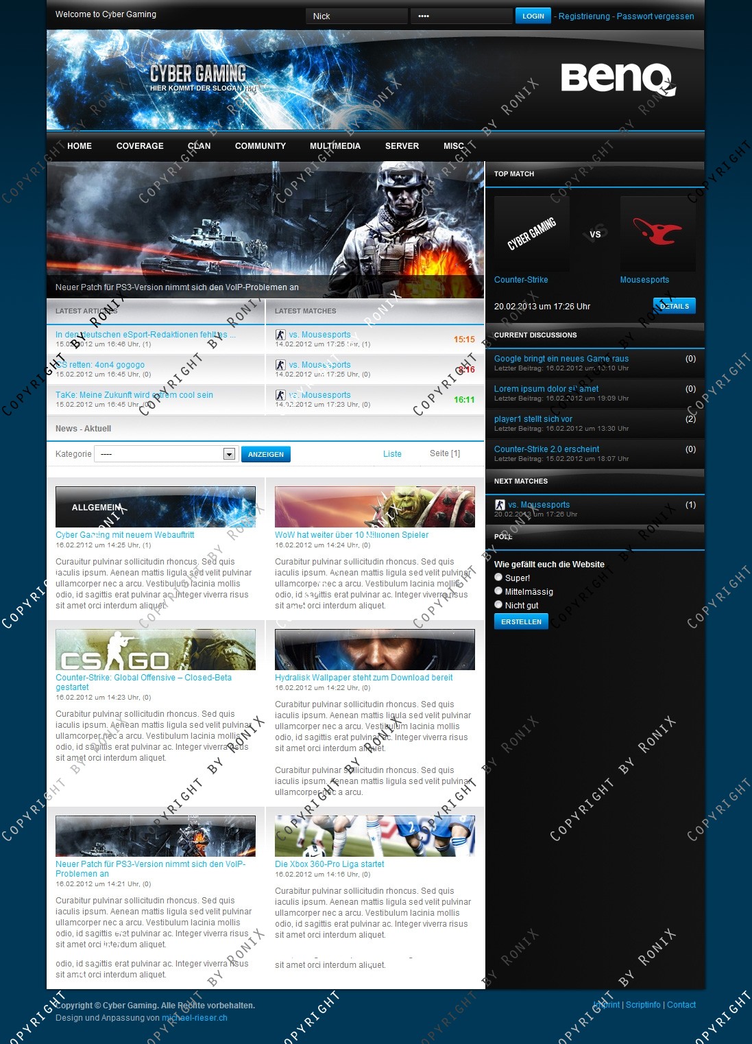 • Photoshop-Vorlagen für Coverages, Header, News, Sponsoren und Top-Match-Logos