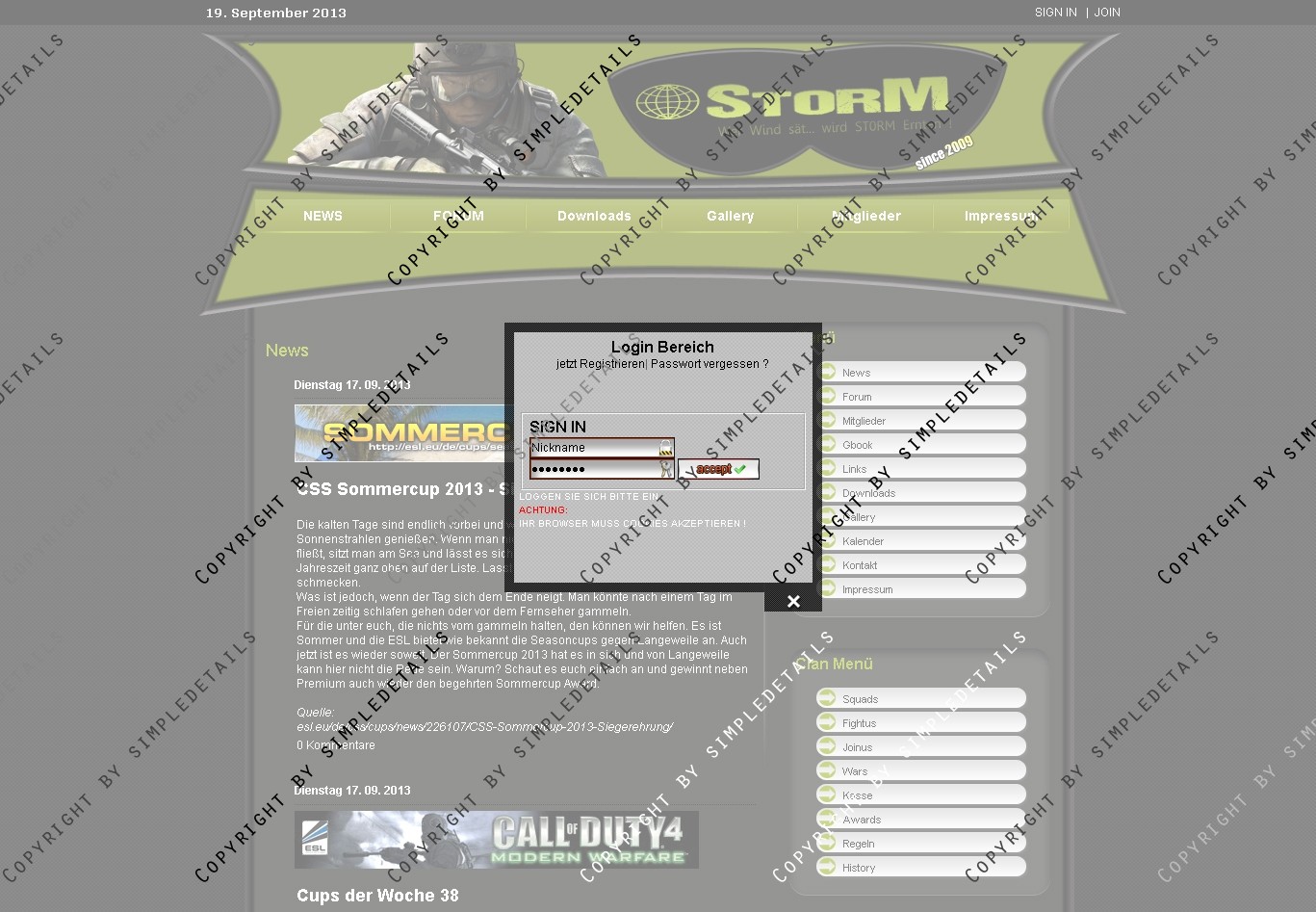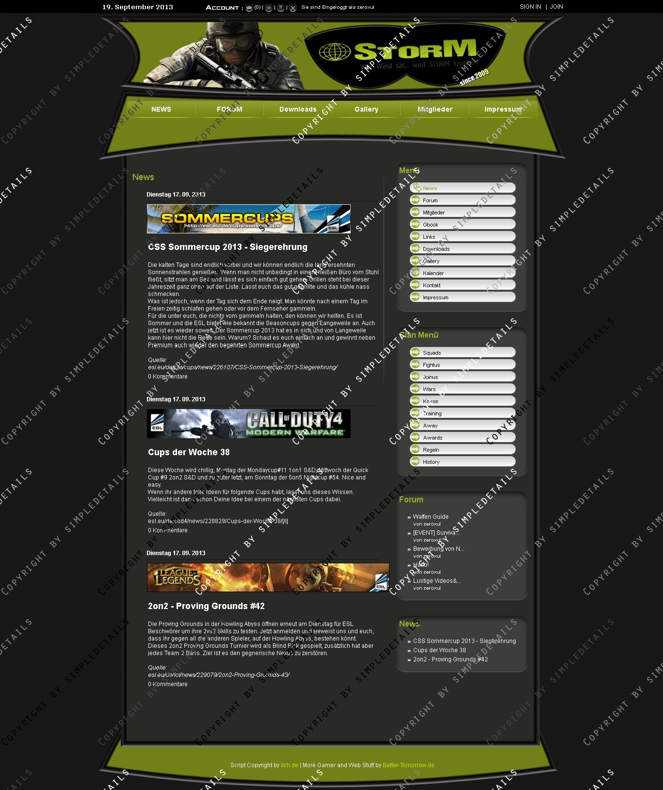 Im Header ist ein Clan-Logo eingebunden, das auch in der .PSD Datei vorhanden ist, und frei angepasst werden kann.