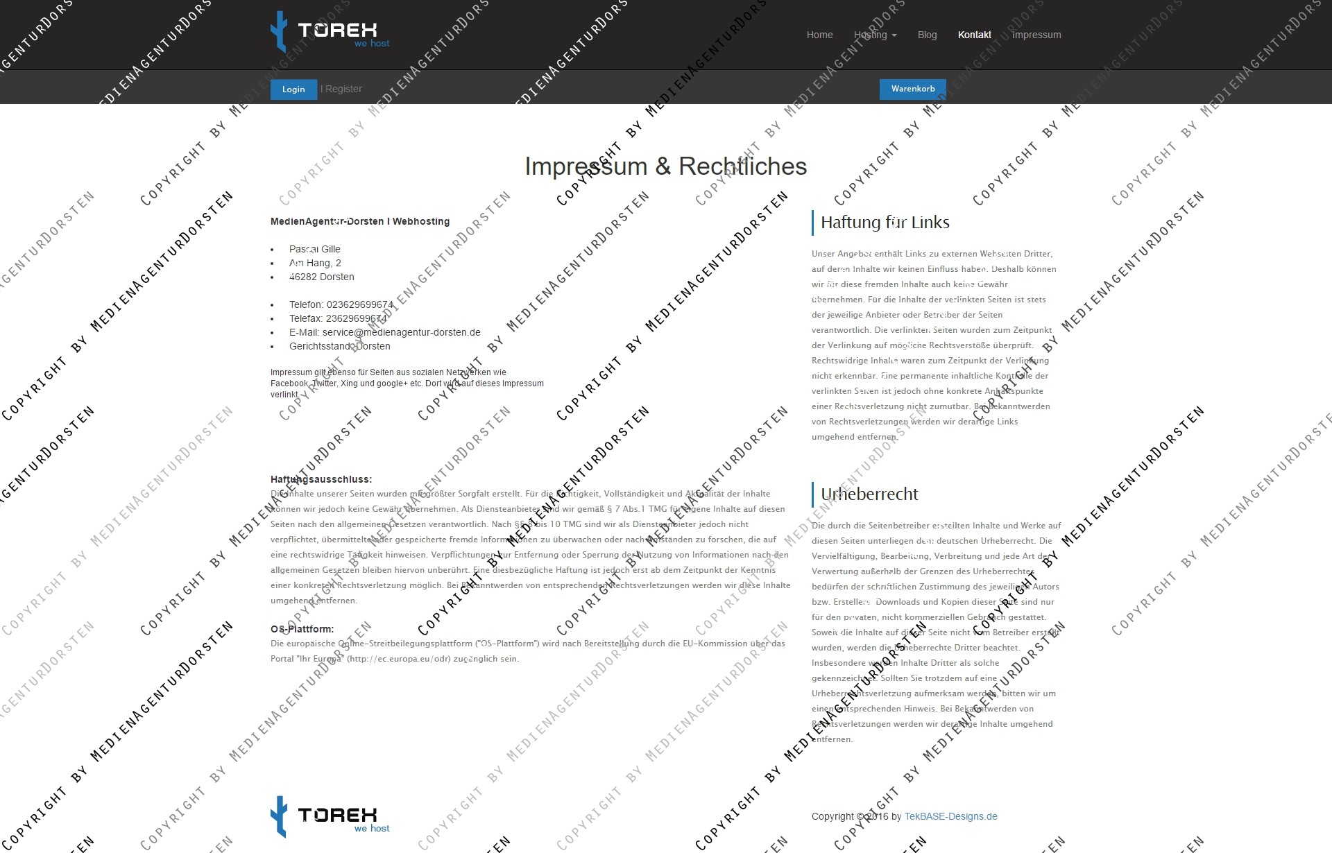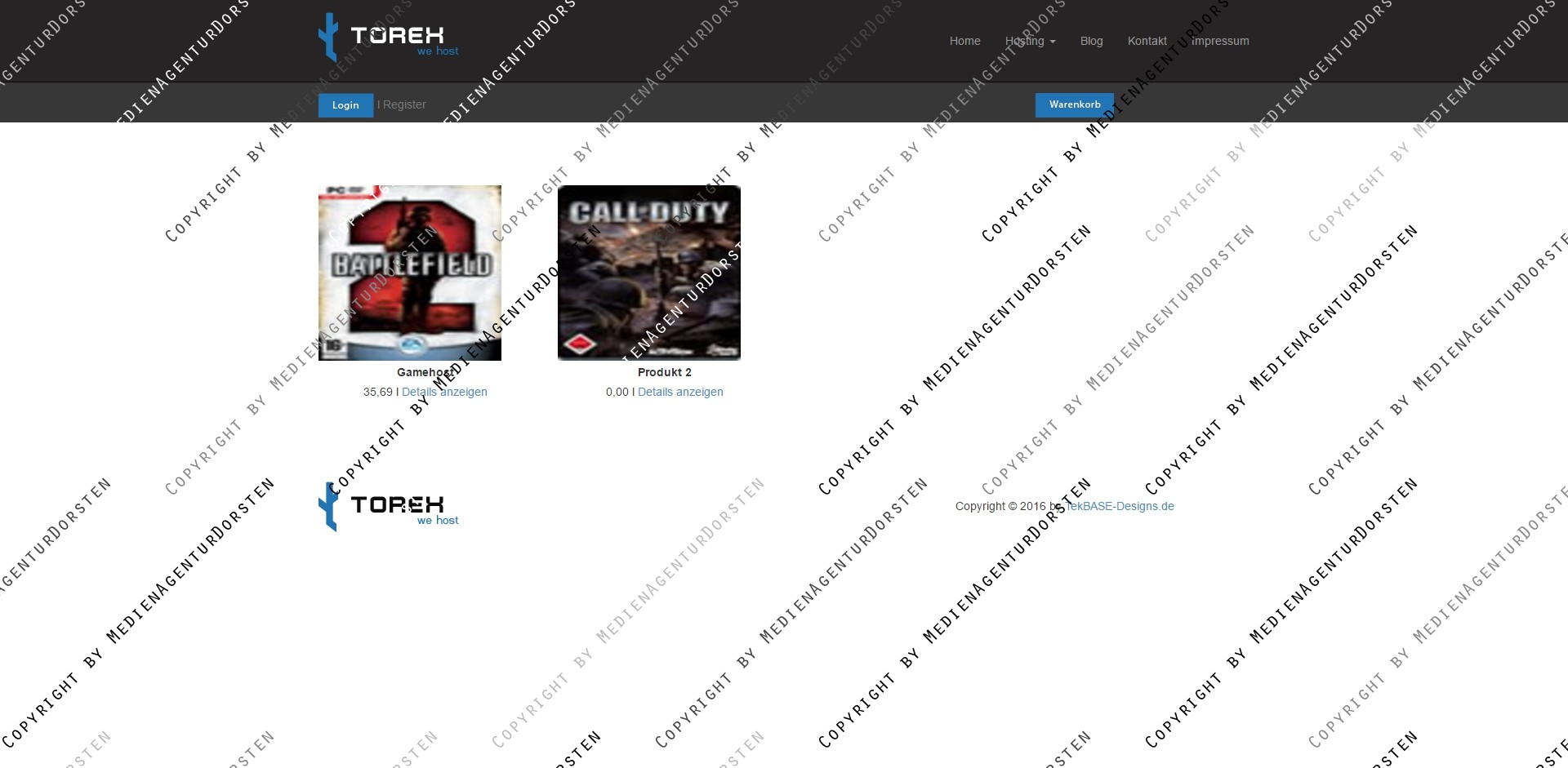 - Unterseiten: Blog, Category, Impressum, Kontaktformular, Product Details, Warenkorb