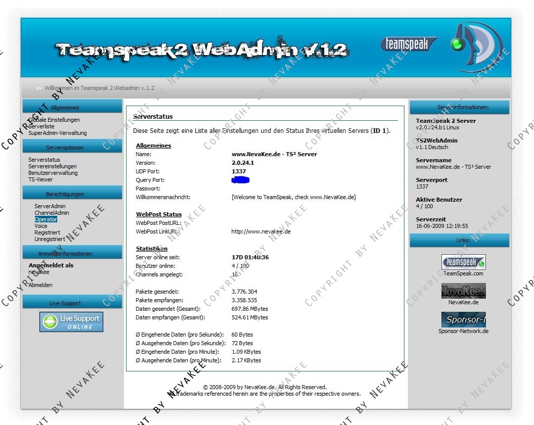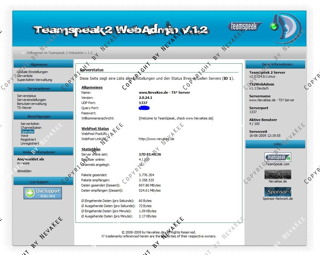 Kostenloses Webinterface für euren Teamspeak Server.